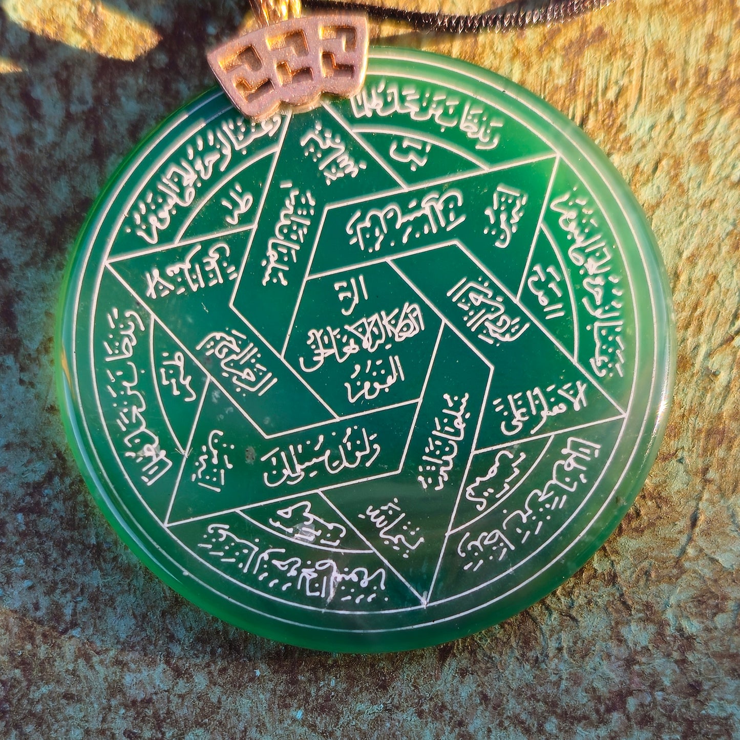It's inscribed with Ruqyah treatment ayats and Al Asma Ul Husna will provide the carrier full protection from magic, jinns, psychic attacks and evil eye.