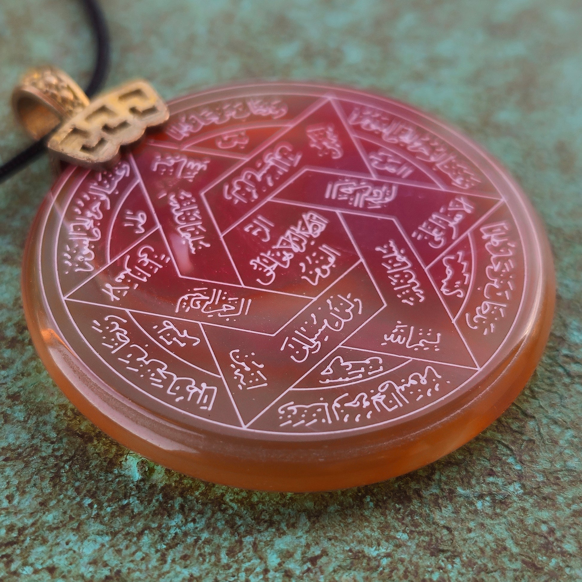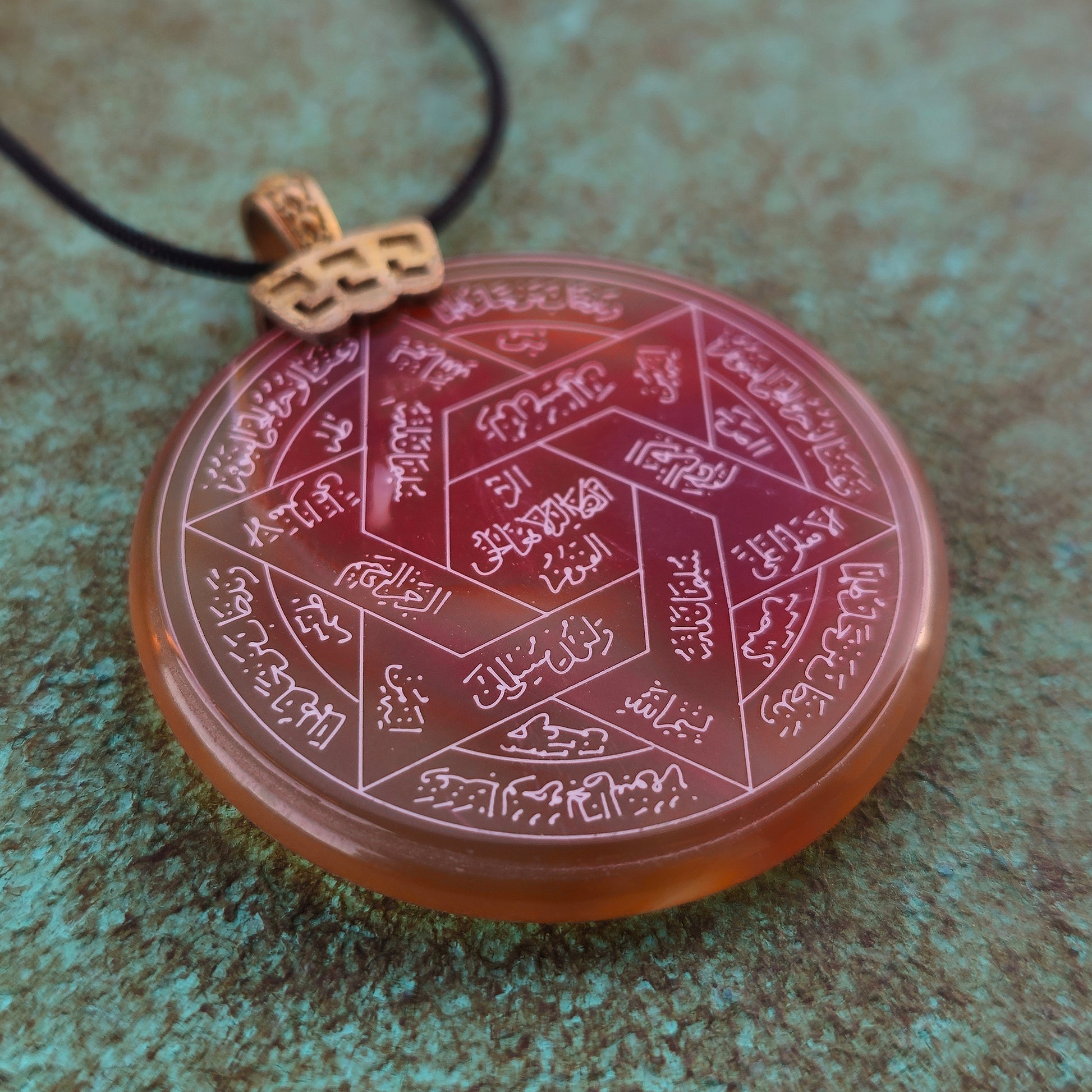 * The Agate pendant with Solomon's seal comes with protective and empowering qualities for the carrier. Inscribed with protective and empowering ayats and names of Allah.
