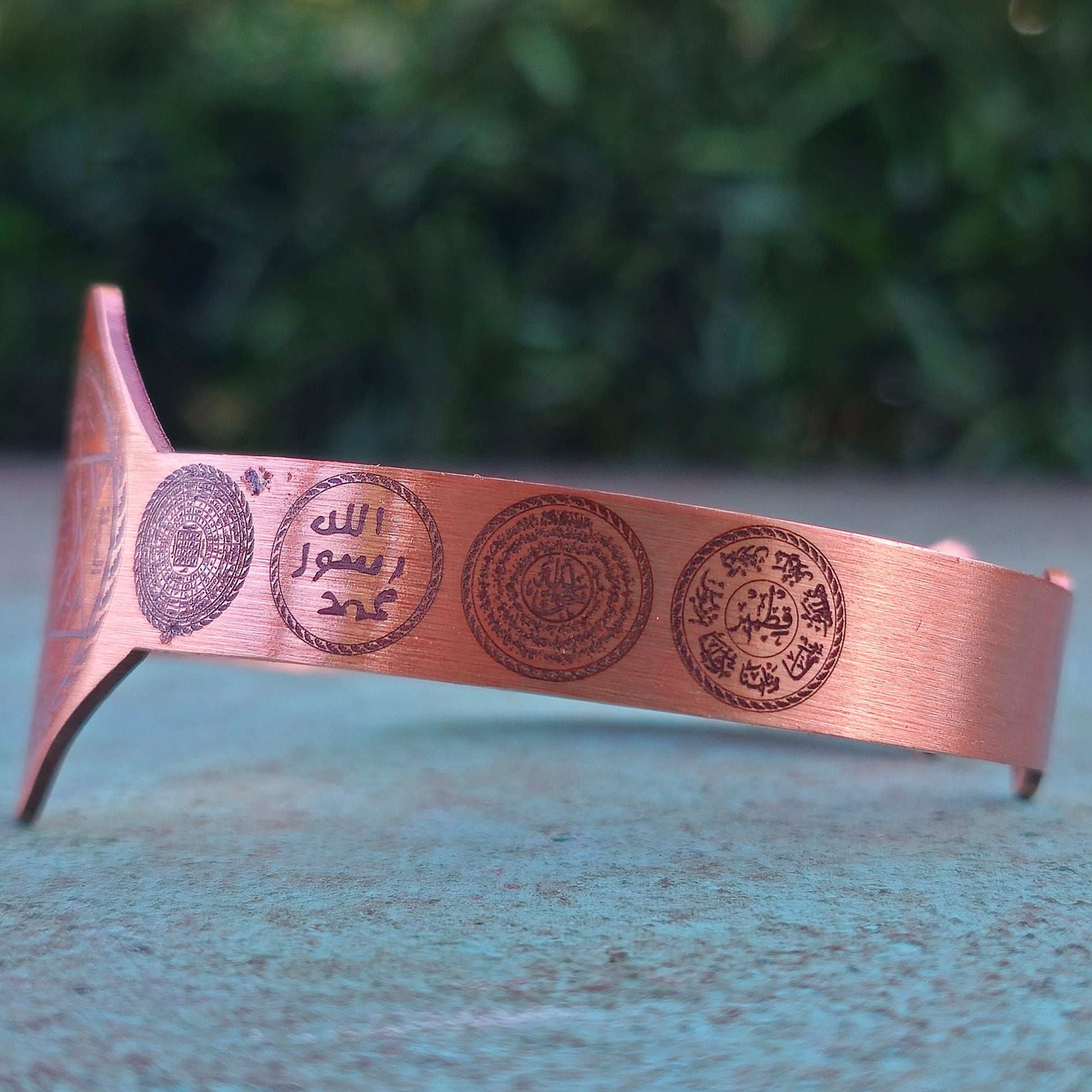 The copper bangle inscribed with Ruqyah treatment surahs and Al Asma Ul Husna will provide the carrier full protection from magic, jinns, psychic attacks and evil eye.