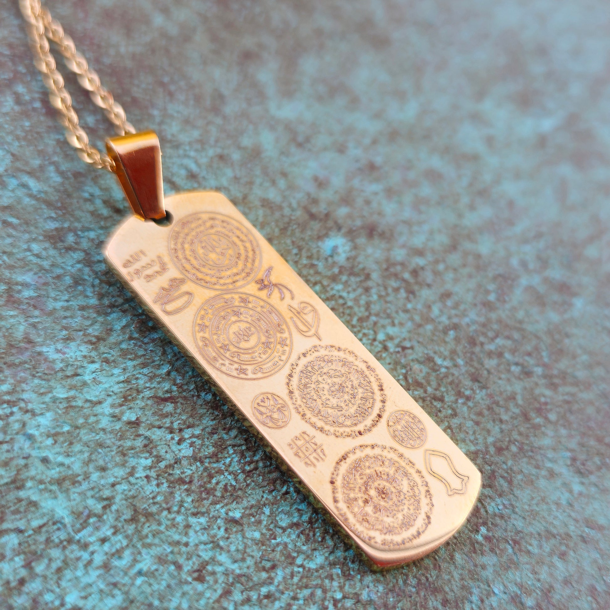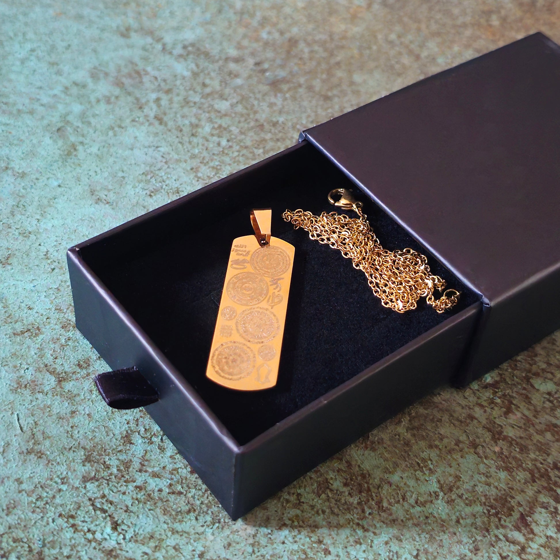 * The pendant comes with protective and empowering qualities for the carrier. Inscribed with protective and empowering texts, the necklace features the following: