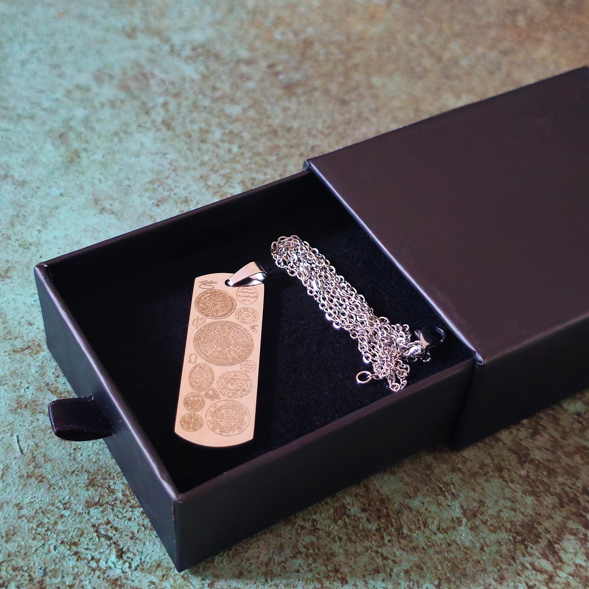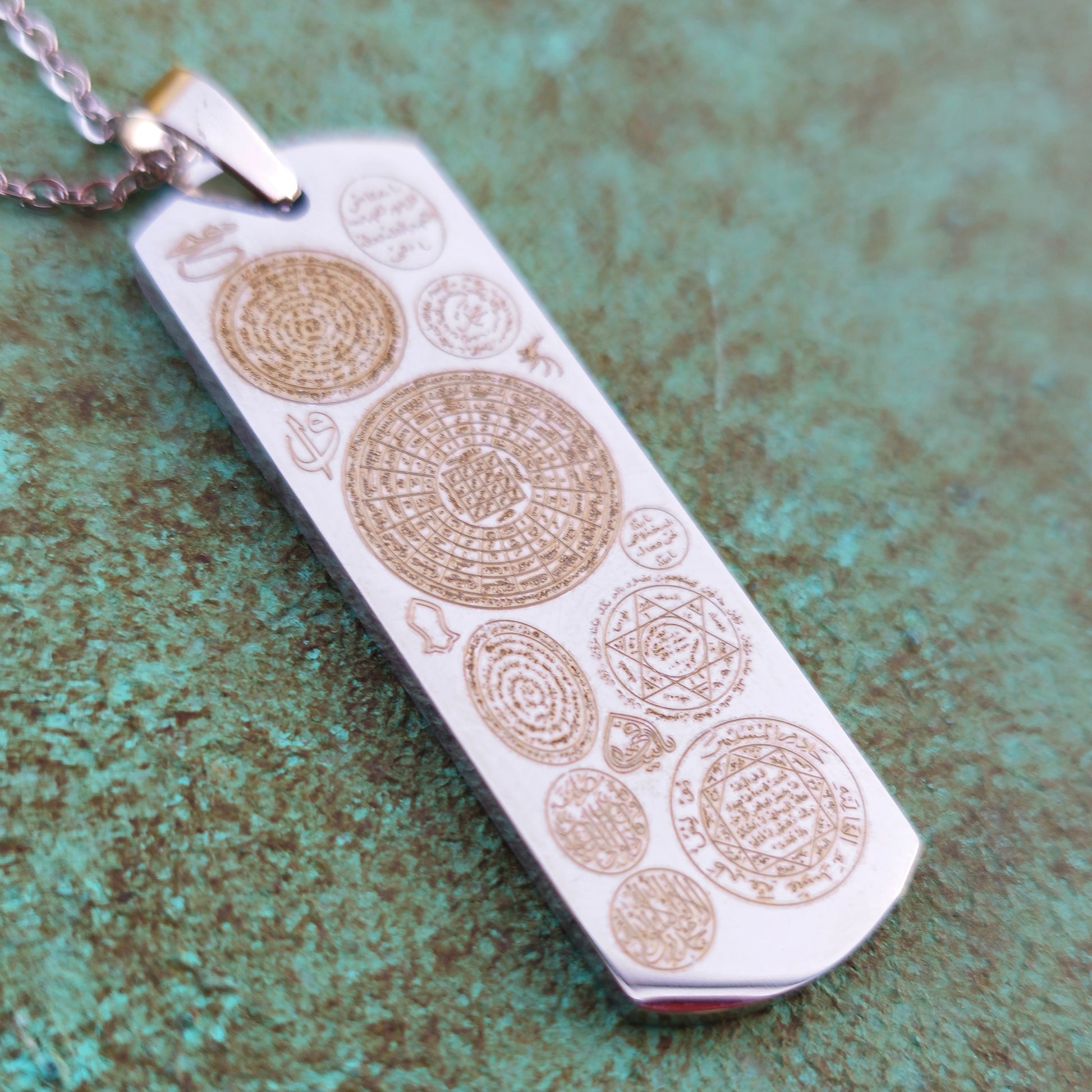 * The pendant comes with protective and empowering qualities for the carrier. Inscribed with protective and empowering texts, the necklace features the following:
