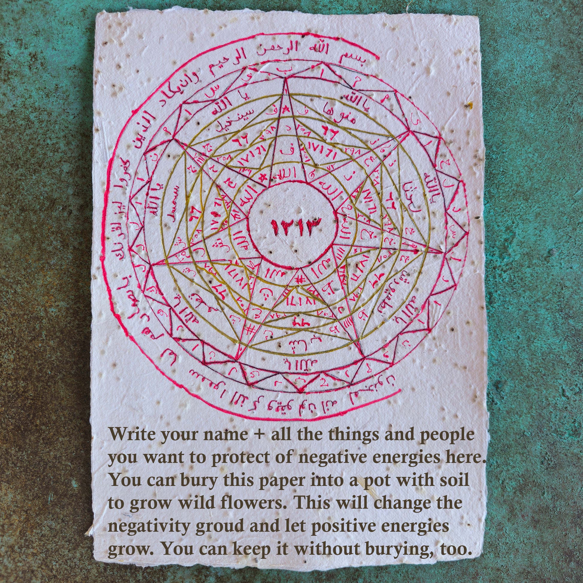 * This protective wazifa taweez is inscribed on handmade seed paper that you can bury into a pot with soil and grow flowers. This will change the negative energy in your house into positivity while repelling all the black magic type of curses. The work is charged by me with several dhikrs in order to protect you and your aura from magic and negativity. You can hang the paper or place it into a drawer, it will work anyways. I kindly recommend to keep it close to your door. Hence, it can block and repel any attempts for psychic attacks aimed at your home, office or shop.