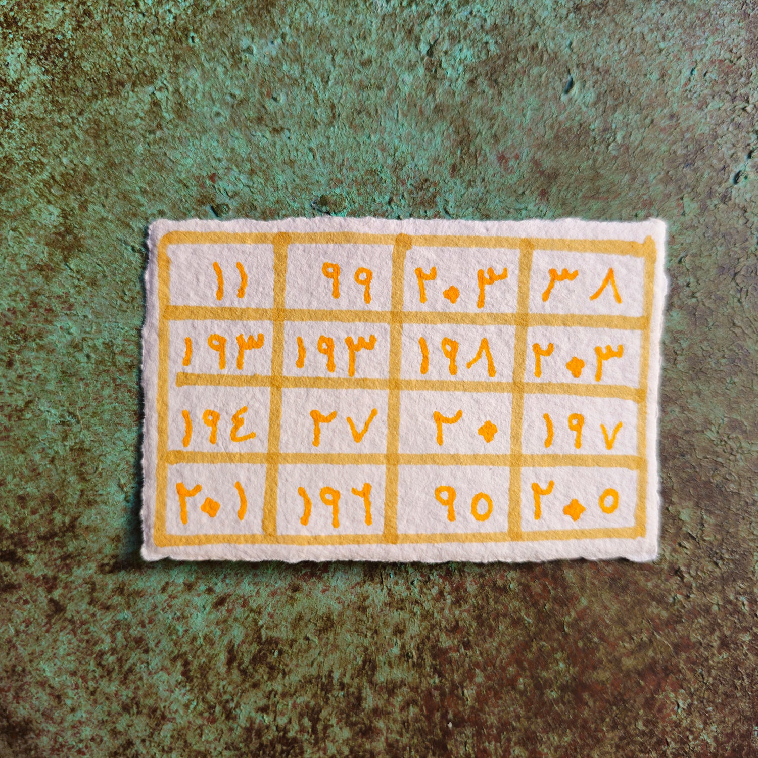 * Zaferan ink (musk powder, rose water and saffron herbs)