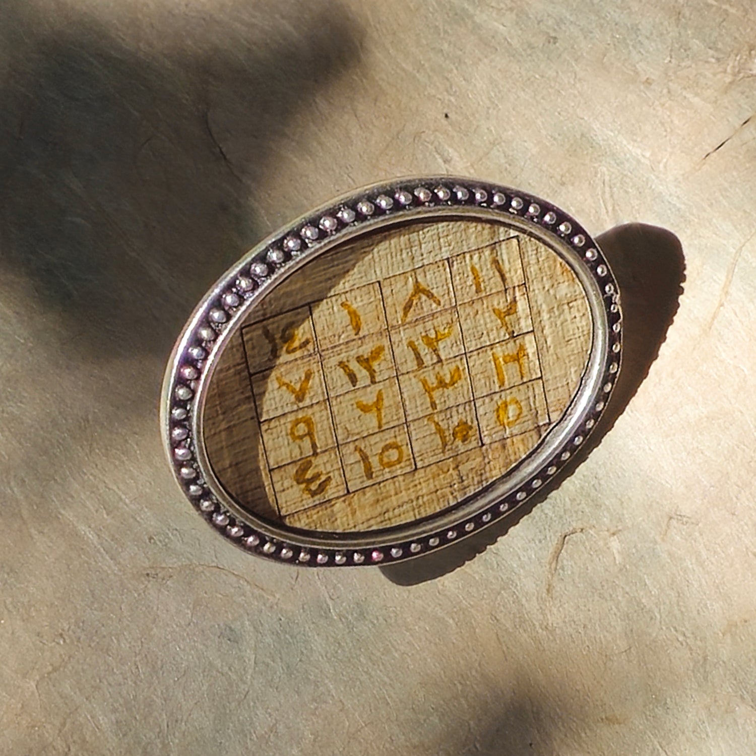 * This talismanic ring is for healing. It's inscribed from the notes of ancient book of Imam Sayyid Sulaiman el Huseyni, an Imam known for his esoteric studies on Islam philosophy. It will activate the aura of the individual for healing and receiving the health needed. According to our work on Theta Healing and Family Constellation, the person who is suffering of health problems, are relying on a secondary gain, thus blocking the already arriving solutions to her/his troubles in health, not seeing them, not perceiving them unconsciously. This amulet ring is for those to remove their blockages and open themselves to receive the cure.